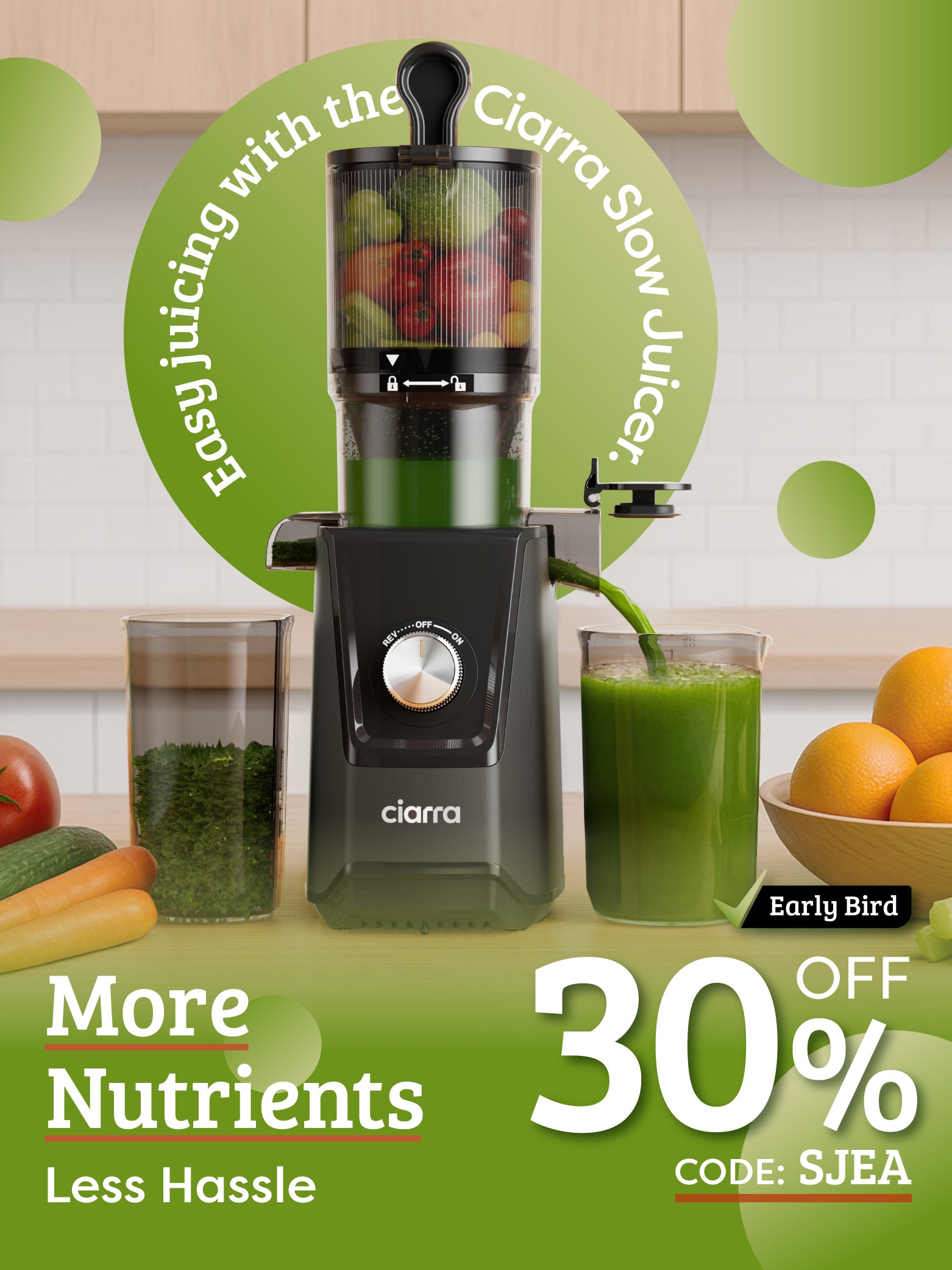 "I don’t know anyone who couldn’t use a bit of an energy boost. 💥So what better way than to use fresh ingredients. This Energizing Immunity Juice is made fresh with powerful ingredients like ginger, turmeric; citrus—pressed to perfection using the @ciarra Slow Juicer. "