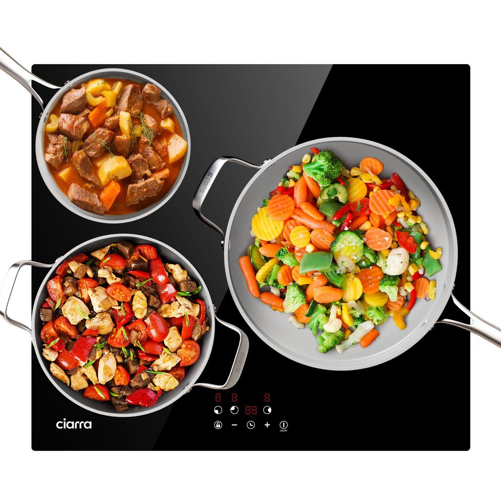 An induction cooktop with 2 burners is a modern, energy-efficient cooking appliance that uses electromagnetic energy to heat pots and pans directly, rather than heating the cooktop surface. It features two burners, allowing you to cook multiple dishes simultaneously. The cooktop provides precise temperature control, quick heating, and easy cleaning, making it a popular choice for home kitchens and small spaces.