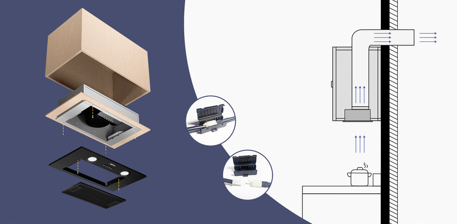 This hood can be vented up through the roof or out through an exterior wall. You should feel the air expelled from the exhaust cap on the ceiling or wall when the fan is running. Also, you can attach the CBCF005-OW carbon filter for better filtration (duct pipe and carbon filter are not included).