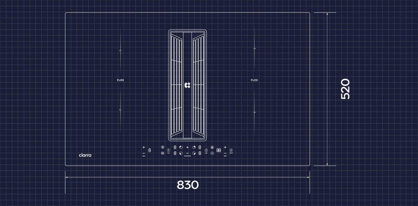 Ciarra ONE Ultra 830mm Extractor Hod Venting Hob Induction Hob with integrated extractor with Built-in Plasma⁺ System CBBEH834BBFF-OW