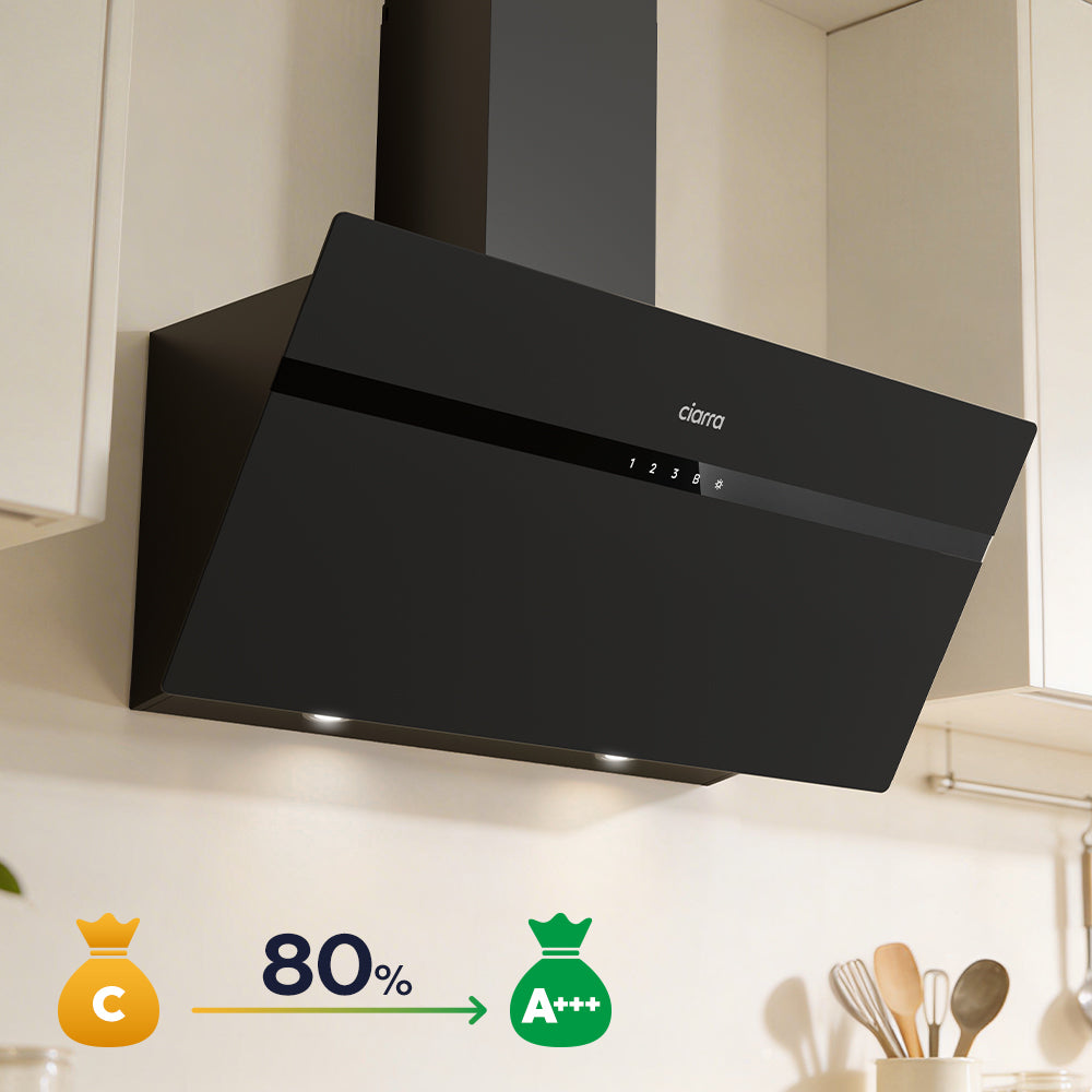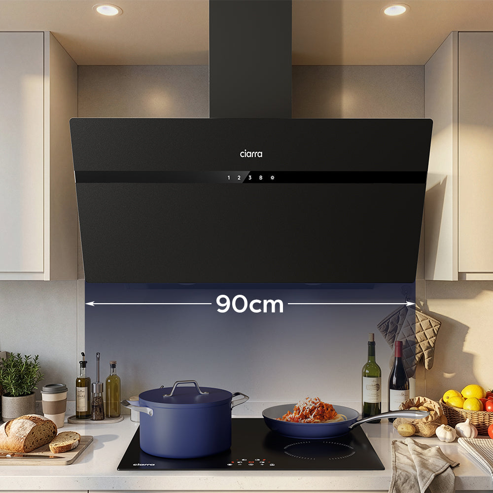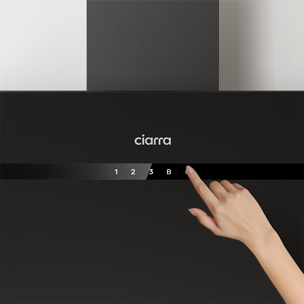 CIARRA 90cm Black Frosted Glass Angled Cooker Hood Anti-Fingerprint A+++ Wifi & Touch Control CBCG9736H-G