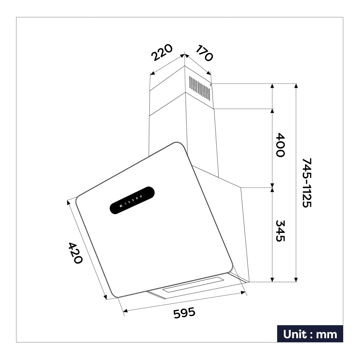 Ciarra angled wall mounted cooker hood