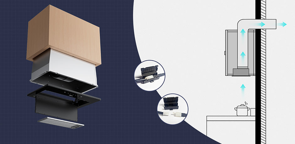 This hood can be vented up through the roof or out through an exterior wall. You should feel the air expelled from the exhaust cap on the ceiling or wall when the fan is running. Also, you can attach the CBCF055-OW carbon filter for better filtration (duct pipe and carbon filter are not included).