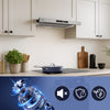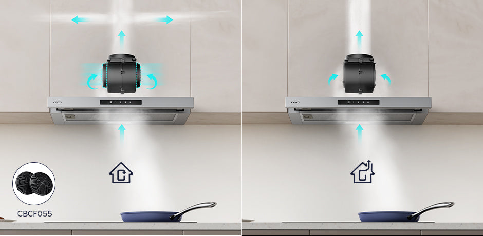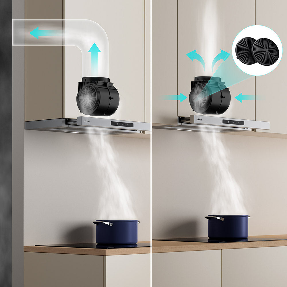 - Dual extraction modes: ducted or recirculating with carbon filters
