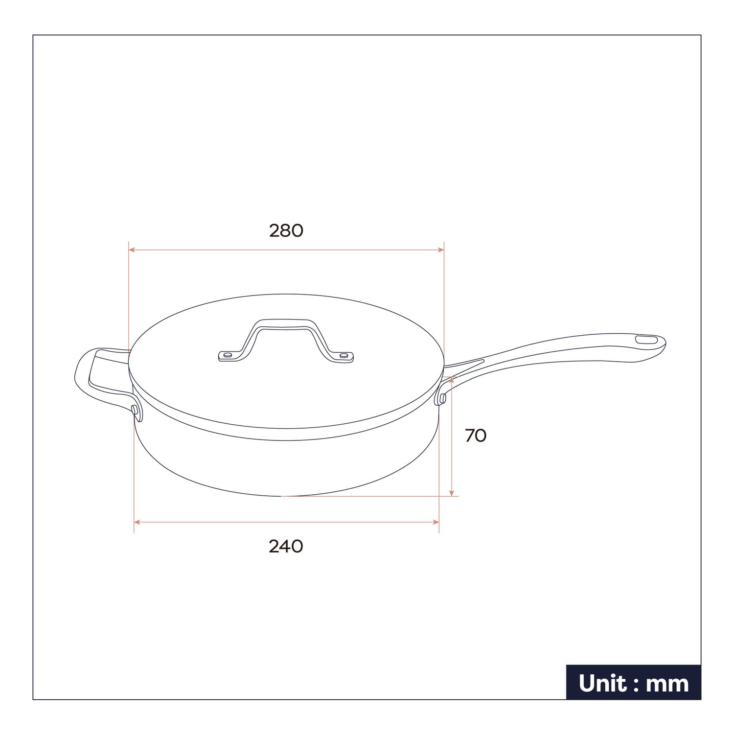 • 280mm diameter, 70mm depth, 240mm bottom diameter