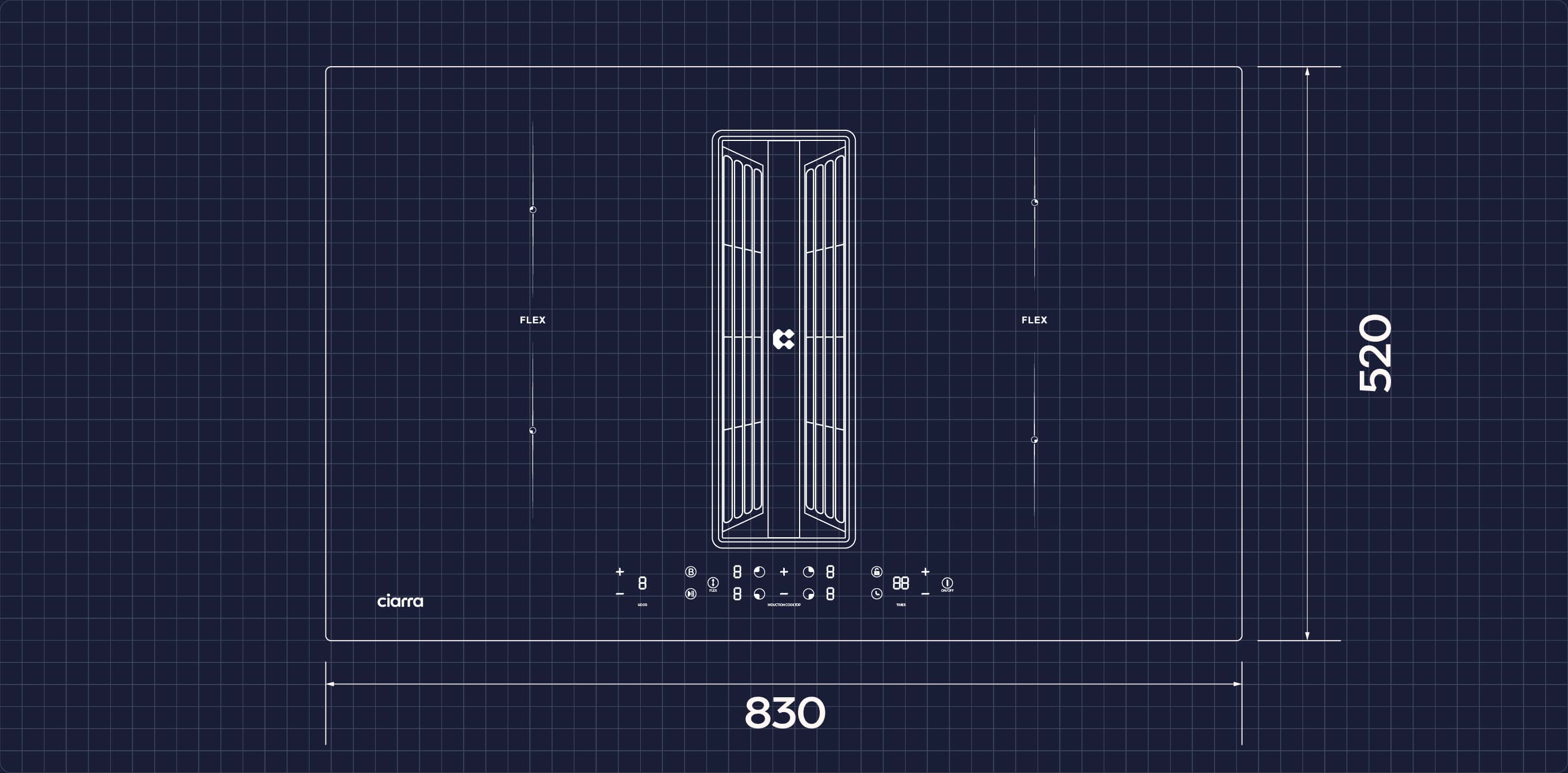 Ciarra ONE Ultra 830mm Extractor Hod Venting Hob Induction Hob with integrated extractor with Built-in Plasma⁺ System CBBEH834BBFF-OW