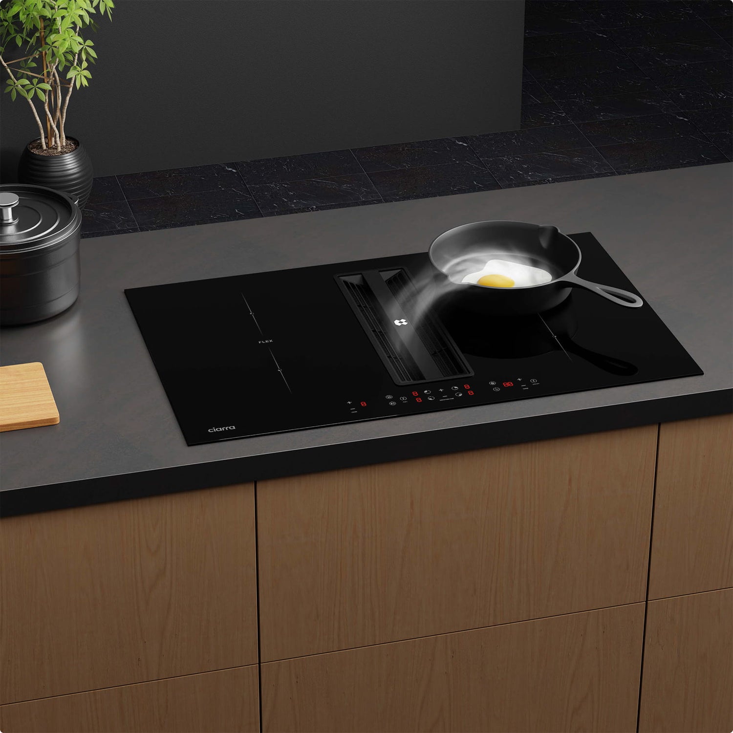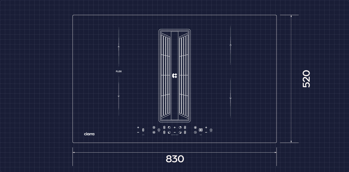 - Ciarra cooking zones with an automatic extractor for easy operation.