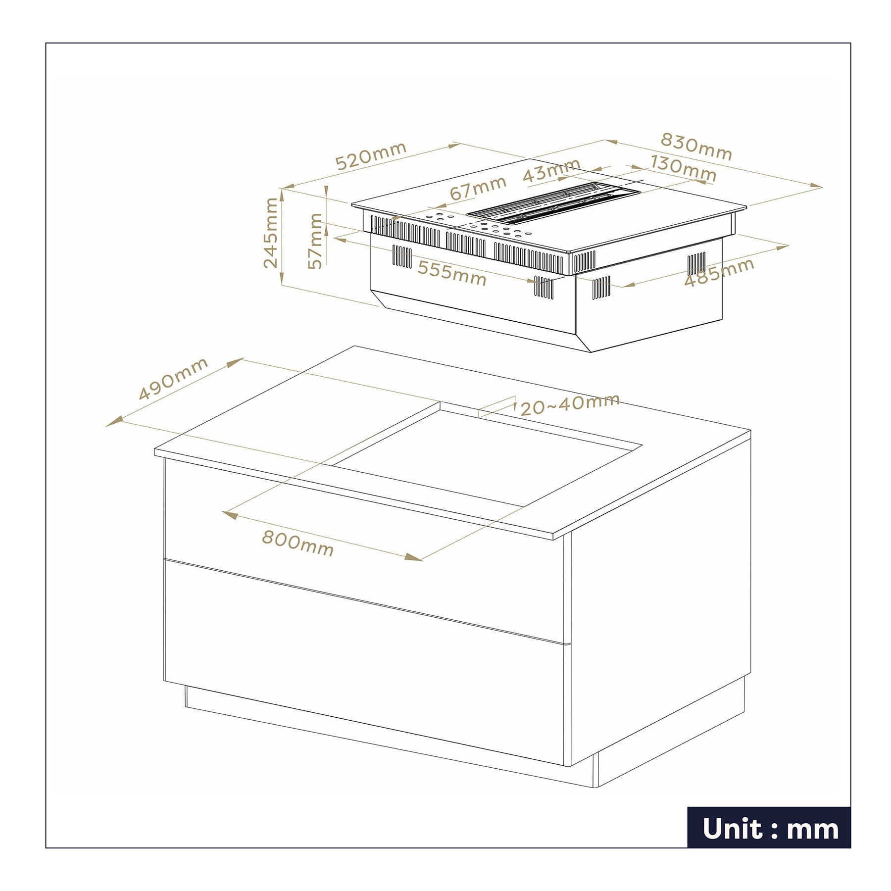 - Two Souls in ONE: 83cm built-in induction hob combined with extractor.