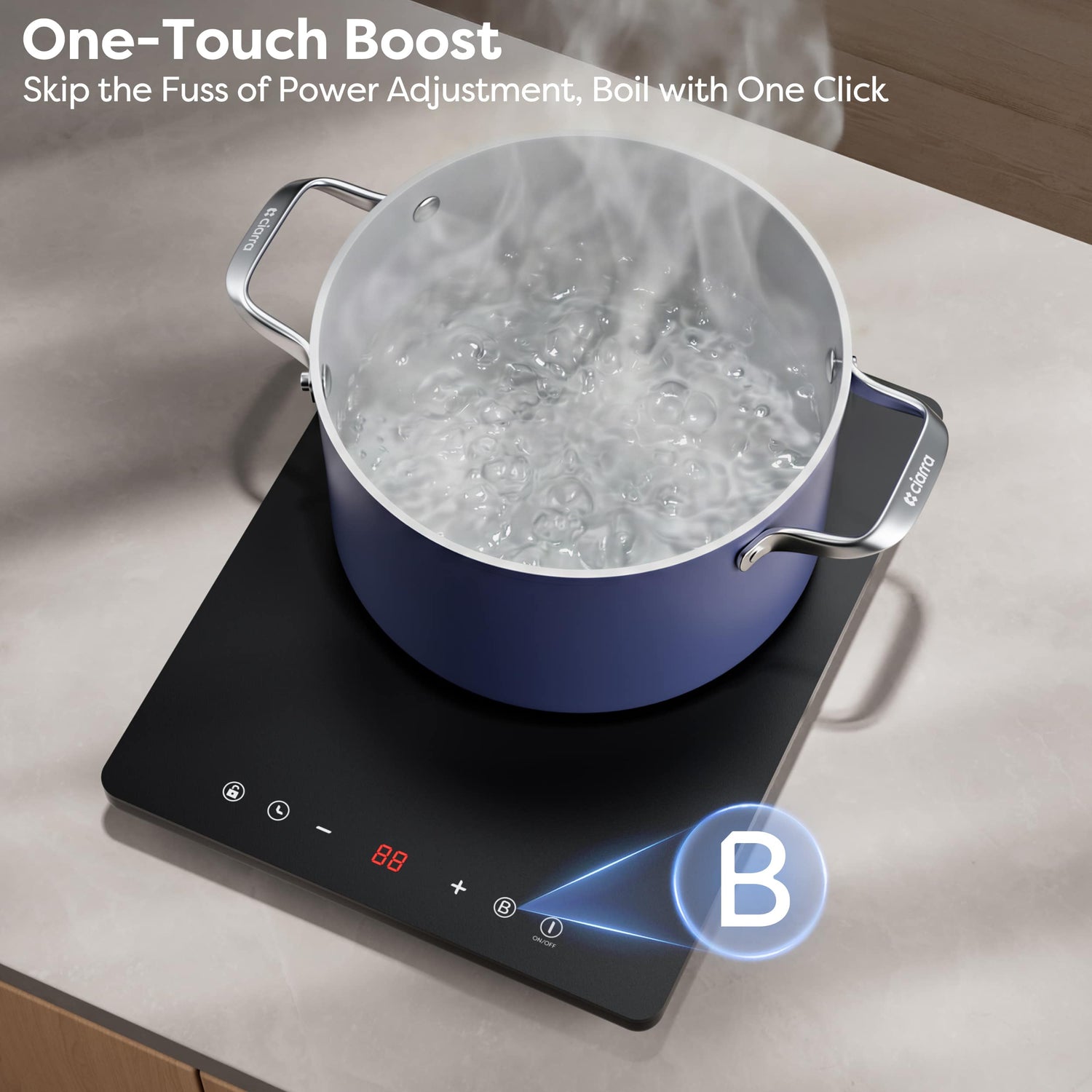 • ⚡ 2000W Rapid Boost & 9 Power Levels:  From delicate simmering to high-speed boiling, enjoy instant heat control.