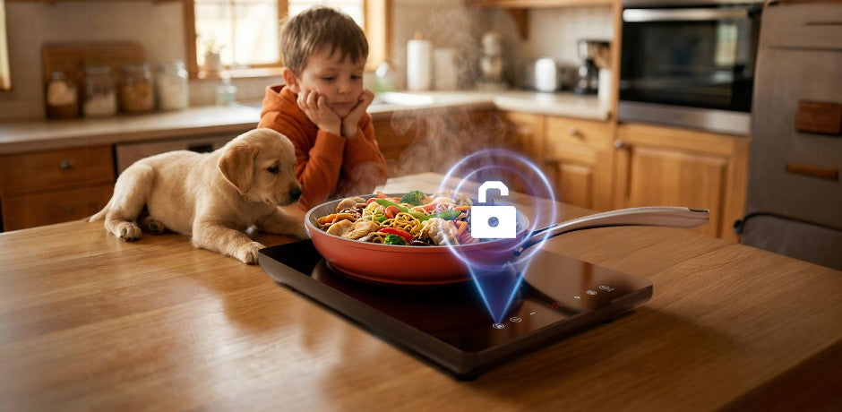 • 🛡️ Multi-Layer Safety Protection: Equipped with a Child Lock, Pan Detection, Auto-Off and the Residual Heat Indicator.